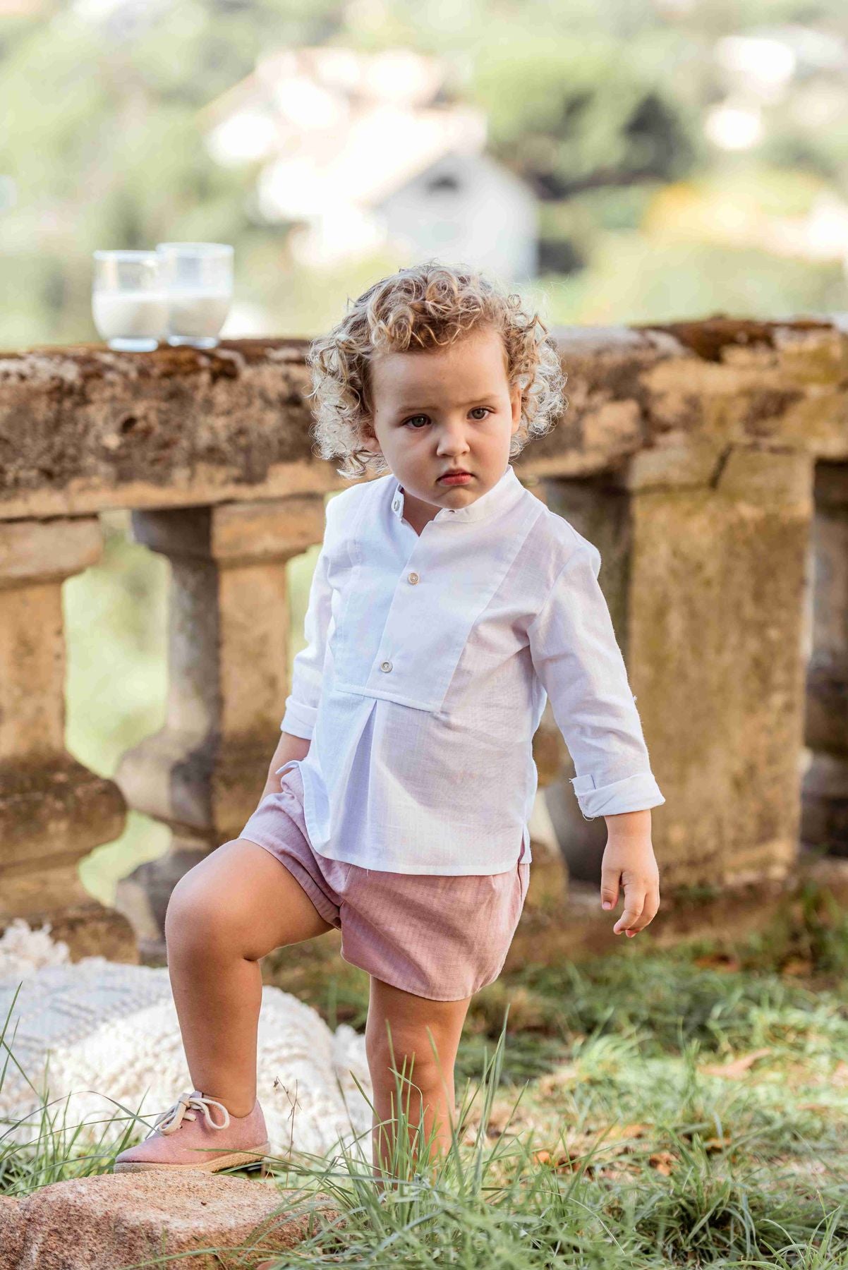 completo in lino con camicia manica corta